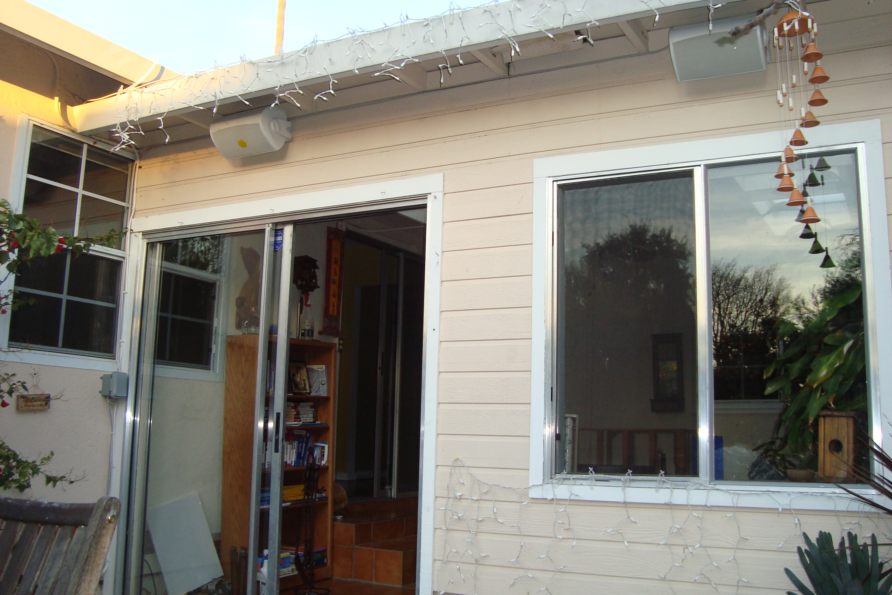 The finished wall plate is shown on bottom, with distributed audio showing on left side (the 4 terminal jacks) that will power six pairs of speakers in other rooms throughout the home. An AV Reciever’s second zone will distribute the audio to each set of speakers through a local volume control, which will allow each set of speakers volume to be turned up or completely down in each individual room.